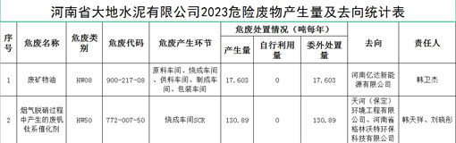 河南省华体会网页版-华体会(中国),水泥有限公司2023危险废物产生量及去向统计表