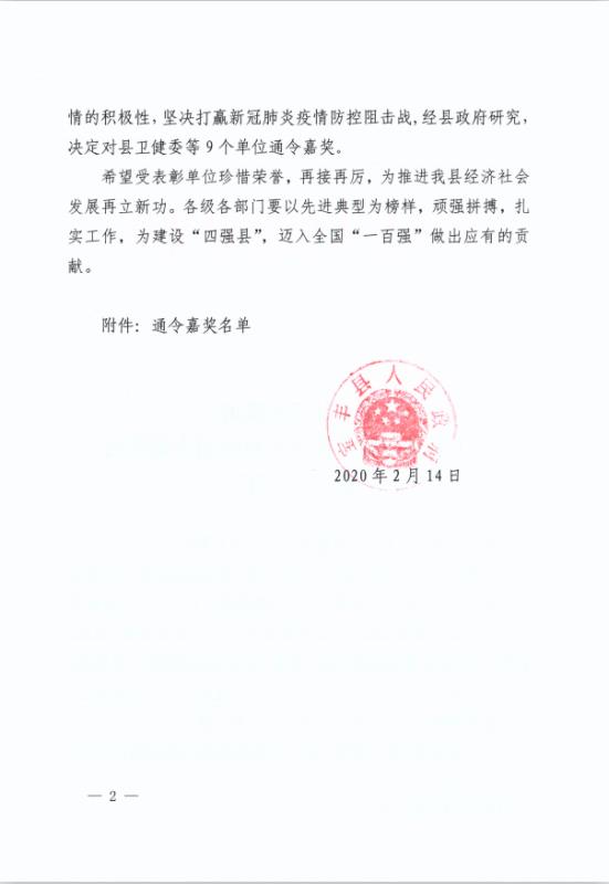 现在,在华体会网页版-华体会(中国),集团防疫一线,党旗高高飘扬,党徽熠熠生辉,党员冲锋在前,已形成一股“红色力量”,将抗击疫情工作有序、稳步向前推进。大家坚信战胜疫情、全面复工复产的那一天就要来临了。就在今天,大地集团因防疫工作成绩突出、贡献重大,受到县政府的通令嘉奖。