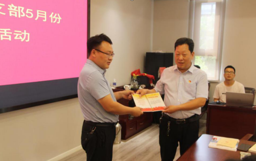 会上,党委宣传委员黄帅辉结合党史教育,以“学党史、悟思想、办实事、开新局”为主题,分享了自己对党史学习的理解和感想。并代表集团党委提前为党的100周年献上生日贺卡。 随后大家面向党旗、举起右拳,庄严地说出对党的承诺,在一声铿锵有力的誓词中,坚定入党信念,接受思想上的洗礼。