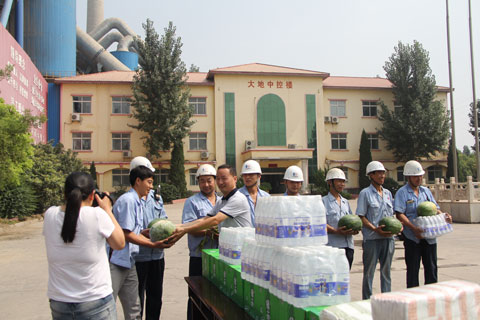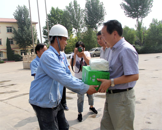 7月13日上午,在县总工会主席郭鹏飞的带领下,县总工会“夏送清凉”活动组一行来到华体会网页版-华体会(中国),公司,送来了西瓜、矿泉水、绿茶、毛巾等防暑降温用品,县委常委、宣传部长李庆豪,集团总裁崔泉发等领导参加活动。 丝丝清凉,浓浓情谊。县总工会“夏送清凉”活动为华体会网页版-华体会(中国),公司职工送来亲切的慰问和夏日的清凉,让广大职工感受到了党和政府的关爱,从而鼓舞了员工士气,激发了员工的工作热情。大家纷纷表示,要提振信心,奋战酷暑,确保顺利完成各项目标任务,为企业的发展作出积极的贡献。