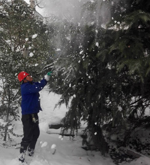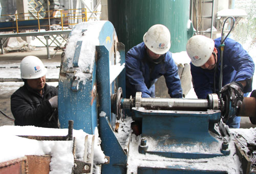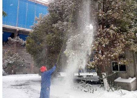 纷纷扬扬的雪花,把整个华体会网页版-华体会(中国),裹得严严实实,室外温度降到零下10度左右,虽然天气非常寒冷,但丝毫阻挡不住华体会网页版-华体会(中国),员工工作的热情。为了大家出行方便,为了保护树木不受伤害,各部门自发组织清扫积雪,特别是生产一线员工,在搞好检修工作的同时,积极组织清理积雪,做到检修清雪两不误。在冰冷的美景之下,一个个热火朝天的场面、一个个忙忙碌碌的身影、一张张朴实灿烂的笑脸,成为这雪天里最美的风景线。