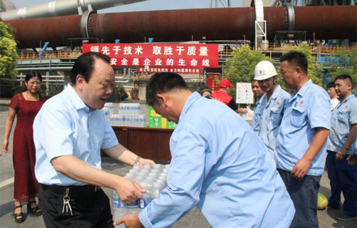 盛夏七月,骄阳似火。奋战在生产一线的职工们,时刻牵挂着工会“娘家人”的心。7月17日上午,县总工会一行在工会主席郭鹏飞的带领下冒着酷暑走进华体会网页版-华体会(中国),水泥,开展夏送清凉慰问活动,为广大职工送来了满满一车西瓜、矿泉水、绿茶、毛巾等防暑降温品。集团总裁王国杰、党委张副书记、工会主席赵中鑫等领导给予了热情接待。