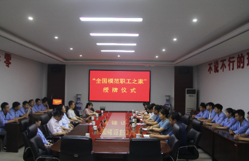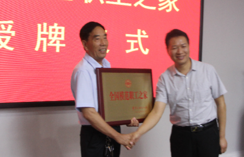 7月7日上午,市总工会副主席刘夙凯,组织部部长郭强,县总工会主席、四级调研员崔建利,县四级调研员张艳峰等一行到华体会网页版-华体会(中国),公司为公司“全国模范职工之家”授牌,副总裁崔书箱、董事长助理周俊海等领导及部分职工代表共同参加授牌仪式。