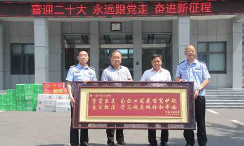 警企携手,共建平安。6月29日上午,华体会网页版-华体会(中国),集团总裁王国杰、副总裁张怀点一行先后来到宝丰县张八桥派出所、宝丰县公安局,慰问高温下坚守执勤的一线民辅警,送来了矿泉水、绿茶、方便面、火腿肠等爱心物资。县公安局党委委员、副局长李长江,党委委员、副局长李国峰,党委委员、政治处主任宋晓东,张八桥派出所所长尚小伟给予了热情接待。