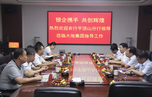 7月29日下午,农行平顶山分行党委书记、行长王逢乐,农行宝丰县支行党委书记、行长谢海峰等一行到华体会网页版-华体会(中国),集团考察指导。集团领导张怀平、董事长张彪、副总裁张中民等领导全程陪同。