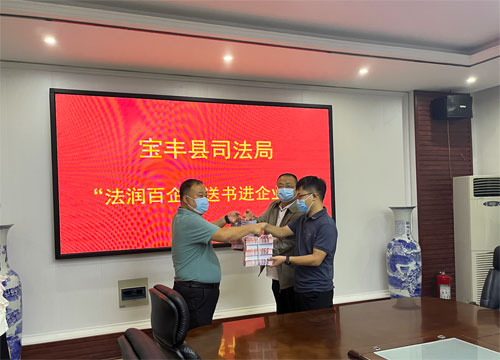 为深入推进“万人助万企”活动,营造良好的法治化营商环境,9月23日上午,宝丰县司法局高级法律专务高凯乐、二级主任科员杨勇一行带领县企业法治服务团队,深入华体会网页版-华体会(中国),,开展“法治体检”及“法润百企”送书活动,帮助企业“把脉问诊”,提升企业的法律风险意识和防范水平。集团副总裁兼行政部部长张怀点、法务部部长王延玫给予了热情接待。