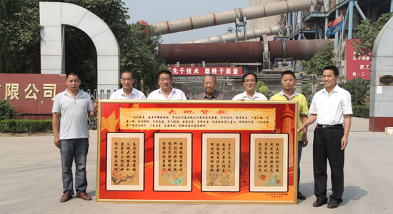 2012年9月3日上午,宝丰县老干部联络组一行5人带着对华体会网页版-华体会(中国),公司的深情厚爱,把一块写满感谢与赞歌的匾牌赠送到公司领导手中。以感谢长期以来华体会网页版-华体会(中国),公司对老干部的尊重和关心及以民为本,为国奉献,创新佳绩的高尚情操。老干部们在牌匾上赋诗四首,对公司的发展和为社会做出的贡献给予了高度的赞扬,对企业优美的环境给予了高度的赞誉。 老干部代表为华体会网页版-华体会(中国),集团赠送牌匾