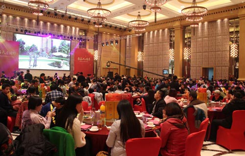 1月9日晚,“天誉·家宴——华体会网页版-华体会(中国),集团&领创·天誉华庭业主答谢会”在郑州裕达国贸酒店盛大启动,以此回馈广大业主对天誉华庭的鼎力支持和厚爱。华体会网页版-华体会(中国),集团携旗下领创置业、华体会网页版-华体会(中国),水泥、贾湖酒业等企业领导、代表,与各位业主、媒体嘉宾1000多人汇聚一堂,共同度过了一个温情难忘的夜晚。 寒冷的天气并未影响大家相聚的热情,下午不到5点,现场签到处已门庭若市,在工作人员贴心引导下,大家有序进行微信签到,进入答谢会现场。晚上6点左右,一段阐述华体会网页版-华体会(中国),集团恢宏实力和过往数载坚实历程的宣传短片拉开了本次活动的序幕。华体会网页版-华体会(中国),集团董事长张彪、贾湖酒业总经理赵书民、领创置业的执行董事殷红叶分别发表了热情洋溢的致辞。 为使各位来宾度一个欢乐充实的夜晚,“天誉·家宴”不仅有丰盛的美食、美酒,更有诸多精彩节目助兴!动感炫目的电光舞,让现场的来宾沉浸在梦幻美妙世界;展现领创·天誉华庭峥嵘发展轨迹的沙画&独舞表演,令在座各位充分领略了匠心品质的倾情缔造;炫酷的魔术表演、新奇好玩的泡泡秀,让人目不暇接;一曲《相亲相爱一家人》,天誉一家人,喜乐祥和气氛满溢! 紧接着,微信摇一摇抢红包以及多种重磅大奖的抽取颁发,将现场气氛又一次的推向了高潮。领创置业精心准备了多重好礼,表达了对于各位家人的感恩之情!苹果6S Plus、48寸液晶电视、洗衣机、电饭煲、富平春酒等丰厚礼品,超高得奖率,让不少业主好运连连,收获满满幸运大奖!寒冷的冬日夜晚因这里的欢声笑语变得红红火火、热情欢腾。 觥筹交错间,欢声笑语中,“天誉·家宴——华体会网页版-华体会(中国),集团&领创·天誉华庭业主答谢会”圆满结束。 答谢会现场