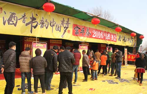 农历正月十一,笔者来到书会现场,伴随着一路“酒香书韵中国梦”的大型彩虹门,远远地看到道路两侧挂满了大红的灯笼。“天地同书马街会,日月共醉富平春;无酒不诗书,诗酒趁年华”等大红条幅格外引人注目,这是华体会网页版-华体会(中国),集团旗下的富平春酒业给今年的马街书会带来的新生机新活力。