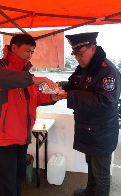 工作间隙,可敬的环卫老人放下手中的扫帚,喝杯富平春暖暖身