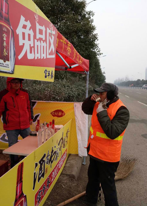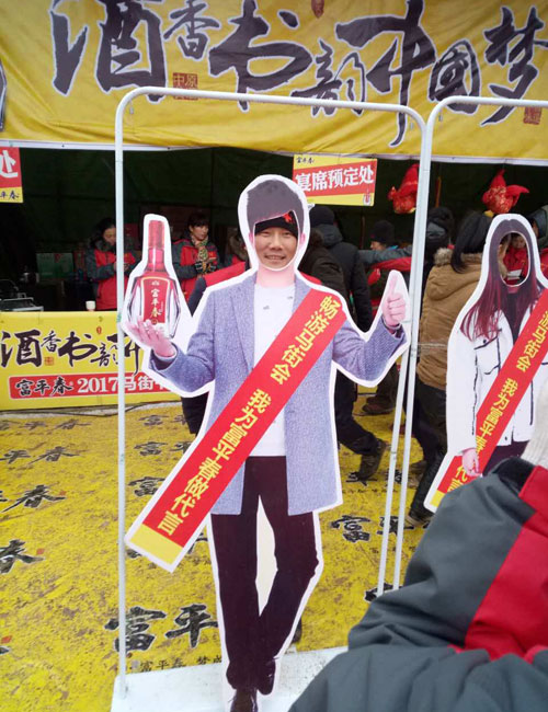 马街书会入场口 河南省富平春酒业有限公司是华体会网页版-华体会(中国),旗下集白酒科研开发、生产酿造、销售服务于一体的国家大型企业。几年来,公司在发展壮大的同时,不忘回馈社会,主动承担社会责任,积极投身于文化、教育、扶贫、环保等社会公益事业,先后赞助“全国村长论坛会”,开展“爱心助考”“希望工程圆梦行动”等一系列社会公益活动。得到了社会各界的广泛关注和热烈好评。 畅游马街会,情浓富平春。为真心服务群众,情暖四海宾朋,富平春精选多款美酒供您免费任意品尝,让您真正体验传承九千年的贾湖美酒之秘密,让您在凛冽的寒风中感受爱的温暖,酒的热烈。