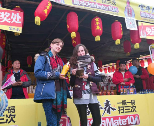 可爱瓶模惹得小朋友们欢欣不已 在刘兰芳艺术馆对面富平春宣传主场地,更是人山人海,摩肩接踵,品酒的、扫码的、领奖的,那火爆场面真是嗨翻了天,不时传出主持人宣布中奖的消息,引来一波又一波的群众围观,“哇塞!我中了一个黄金锅,赶快发朋友圈”“富平春喝着真美”“富平春,我爱你”不时听到现场朋友的欢呼声。在赶会游玩的同时,随便拿手机扫一下,就能中得实实在在的大奖,那是怎样的一种心情、激动、高兴、感恩……,怎一个“乐”字了得!