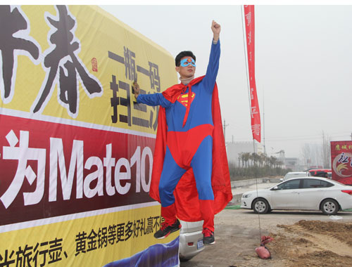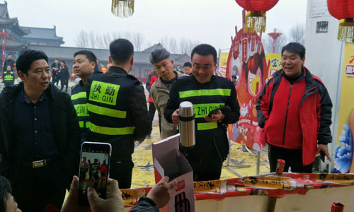 中奖者怎一个“乐”字了得 随着涌动的人潮,笔者来到书会现场,沿路两旁挂满了富平春的彩色吊旗和大红气球,把会场装扮得格外热烈和喜庆。会场中间摆满了贾湖酒业义务为广大商户和艺人搭建的暖心帐篷。更引人注目的是那招人喜爱的瓶模,穿着不同色彩,不同形状的衣服分散在会场各个角落,并不时地与大家握手互动,引得许多群众与之合影留念,更是惹得小朋友们欢欣不已。更为给力的是那神奇惊险的大巴悬浮超人,不时与现场群众争相留影互动。