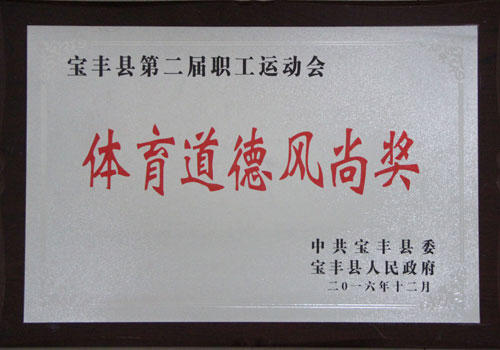 首页 >> 走进华体会网页版-华体会(中国), >>资质荣誉 >> 宝丰县第二届职工运动会体育道德风尚奖