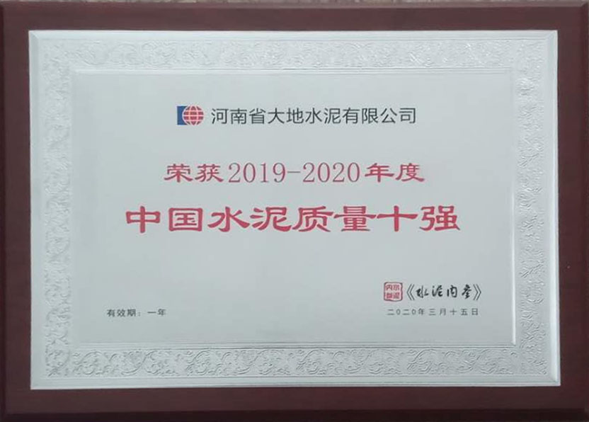 荣获2019-2020年度中国水泥质量十强