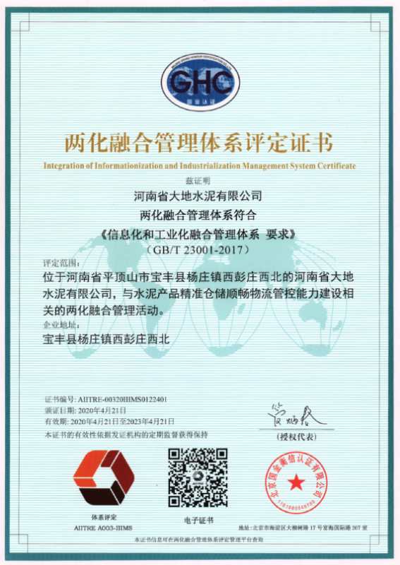 首页 >> 走进华体会网页版-华体会(中国), >>资质荣誉 >> 河南省华体会网页版-华体会(中国),水泥有限公司通过两化融合管理体系认证