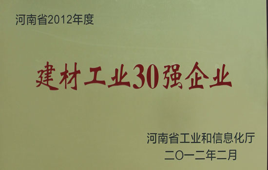 首页 >> 走进华体会网页版-华体会(中国), >>资质荣誉 >> 河南省2012年度建材工业30强企业